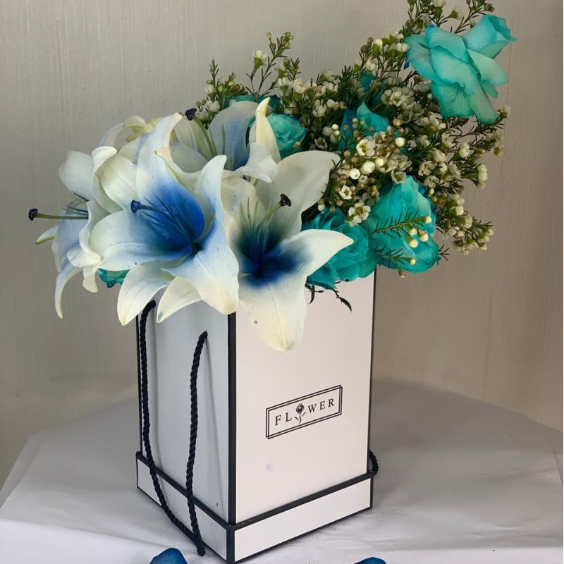 Lily 3 pieces, Roses 7 pieces, Wax Flowers (Available Colors Pink, Blue and White)