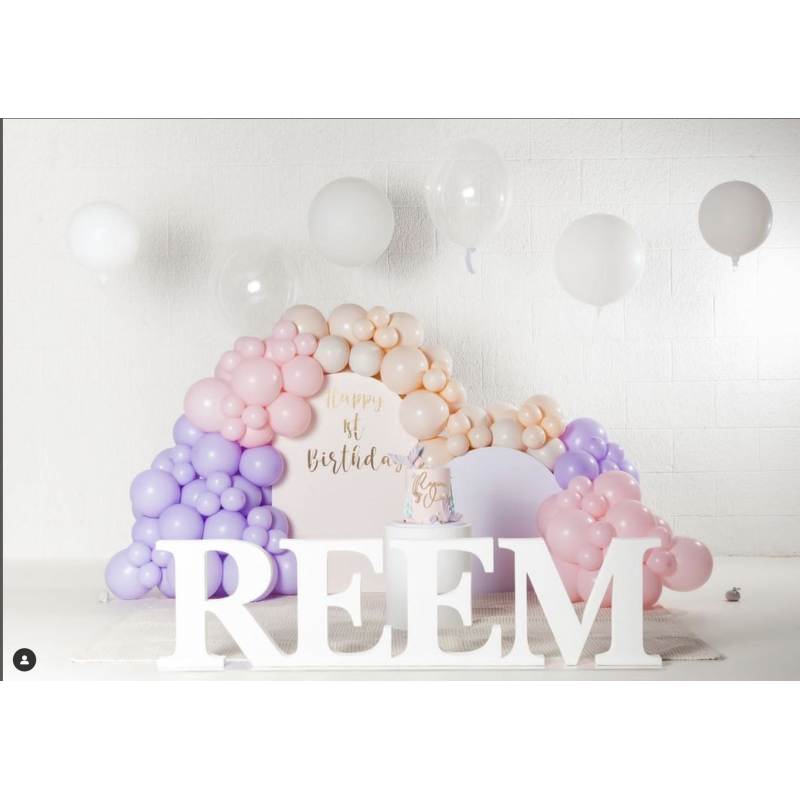 Glamorous 1st Birthday ( Balloon garland 2 x Mini Backdrops (90cm H and 60cm H) 1 x Carpet 1 x MDF Name (25cm H) Personalization on Backdrop 2 x 10 inch Mirror Orbz 2 x 14 inch Mirror Orbz 2 x 24 inch Bubble balloon)