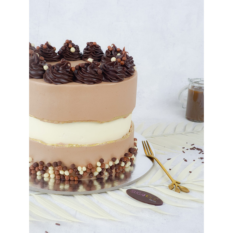Satisfy your cravings for both chocolate and vanilla with our Choconilla Cake! This moist and fluffy cake features layers of rich chocolate and vanilla sponge, finished with a smooth and creamy buttercream frosting. Order now from Sugaholic and indulge in