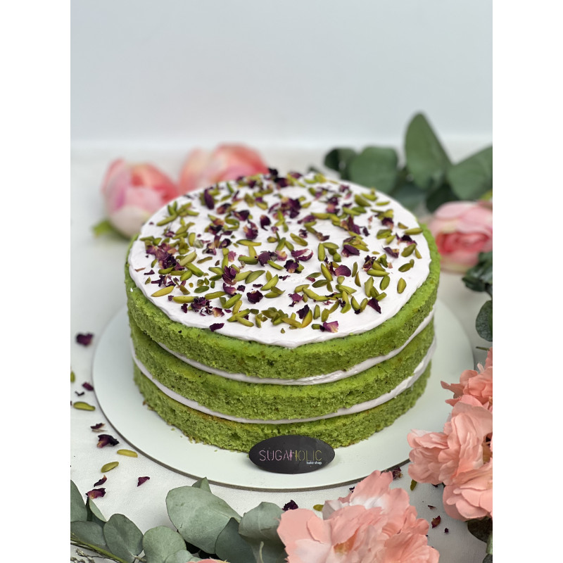 Too pretty to eat! This unique cake consists of a pistachio sponge sandwiched and topped with a delectable rose flavoured mascarpone. It’s an eye turner at every party.