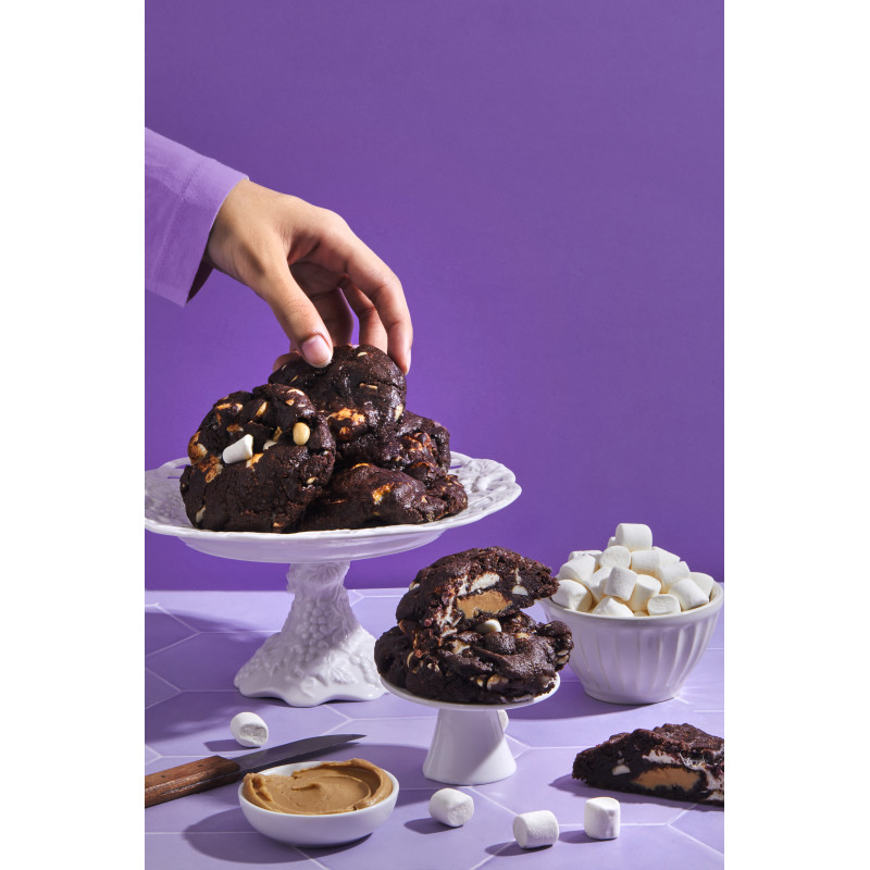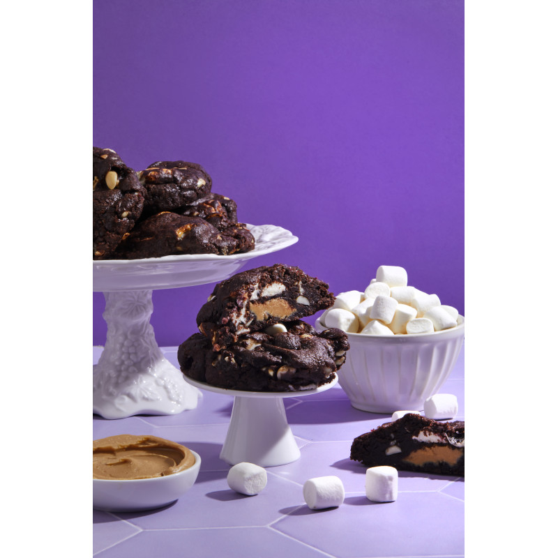 Join the revelry of flavors! These chunky rounds feature chocolate, peanuts, marshmallows, and a surprise peanut butter twist—a rocky road delight.
