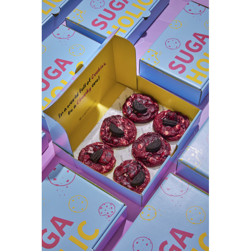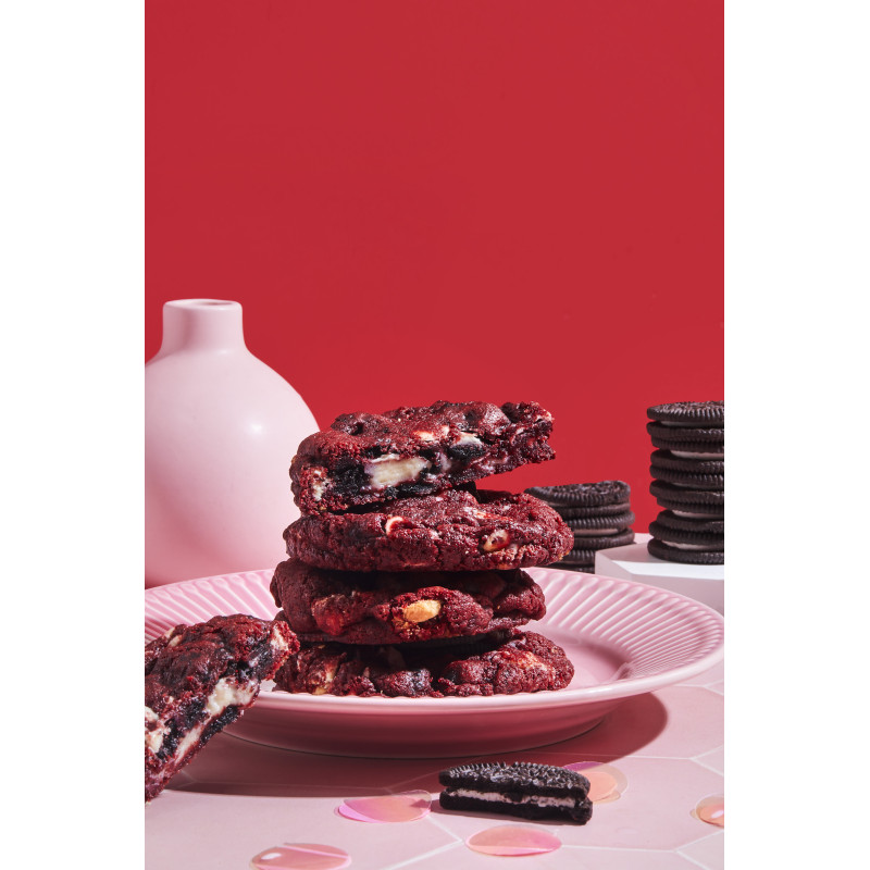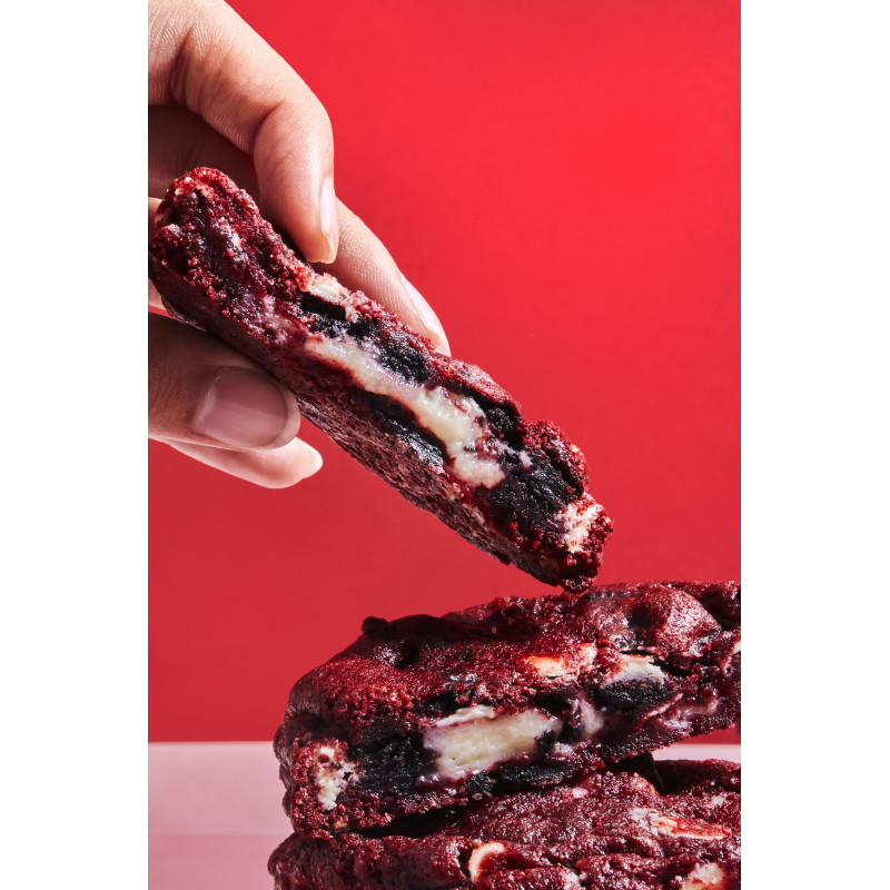 Experience pure delight with these chunky Red Velvet Cookies featuring generous chunks of oreo's and white chocolate and a cream cheese center.