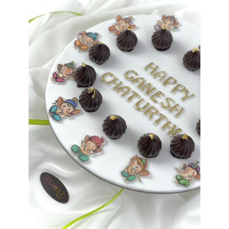 Indulge in the heavenly delight of Chocolate Modaks with a delectable filling that elevates the traditional Ganesh Chaturthi treat to a whole new level. These handcrafted confections combine the richness of chocolate with a luscious filling to create a truly irresistible experience, perfect for celebrating the auspicious festival of Ganesh Chaturthi.