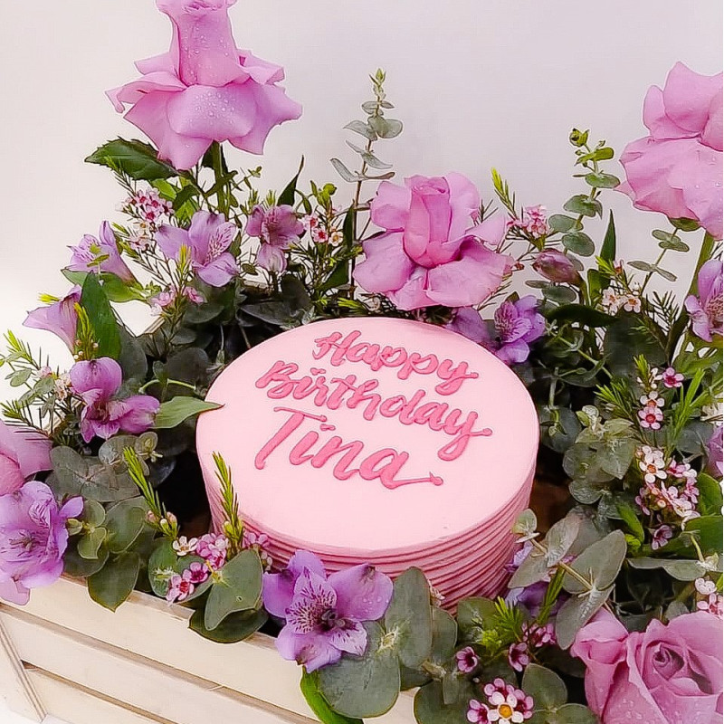 Purple Glory - A Crate with Flowers and Cake for a perfect gift. Order Online now on Sugaholic.com and get it delivered to your loved one.