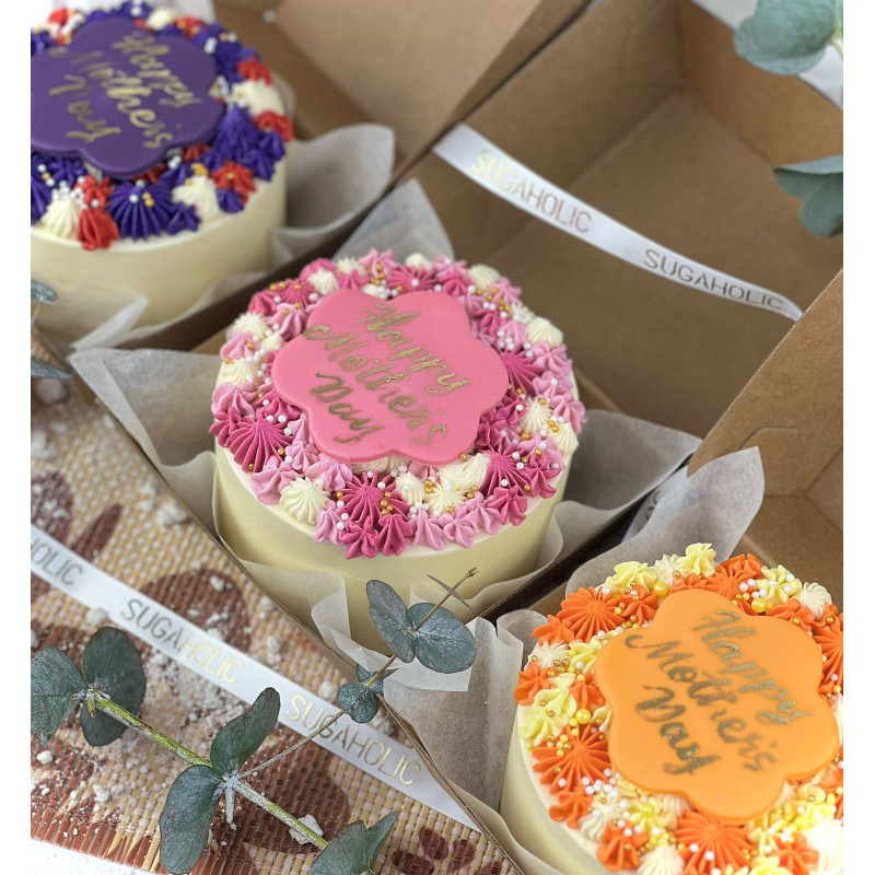 Introducing our Mother's Day Bento Cake: a stunning blend of elegance and taste. Adorned with delicate floral accents and crafted with layers of moist sponge cake and velvety buttercream. Perfect for celebrating the cherished mothers in your life with style and sweetness.