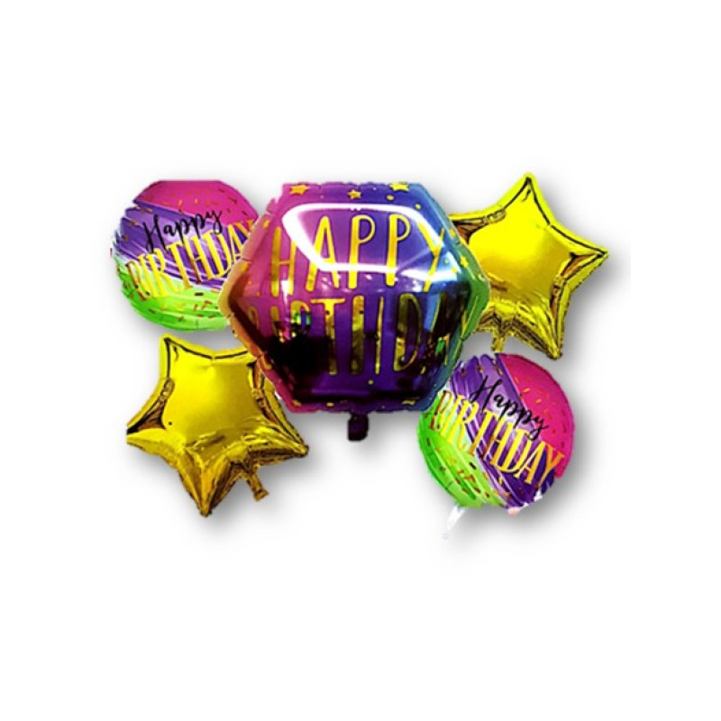 Happy Birthday Chrome Hexagon Balloon set