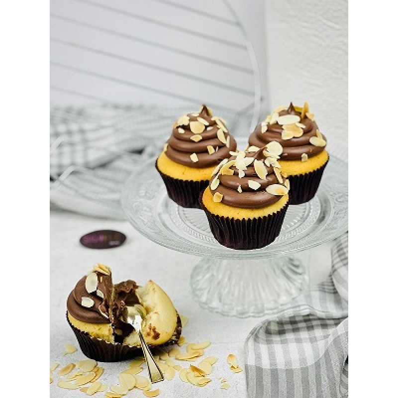 Our fluffy vanilla sponge cupcakes filled and topped with the goodness of our Belgian chocolate ganache.