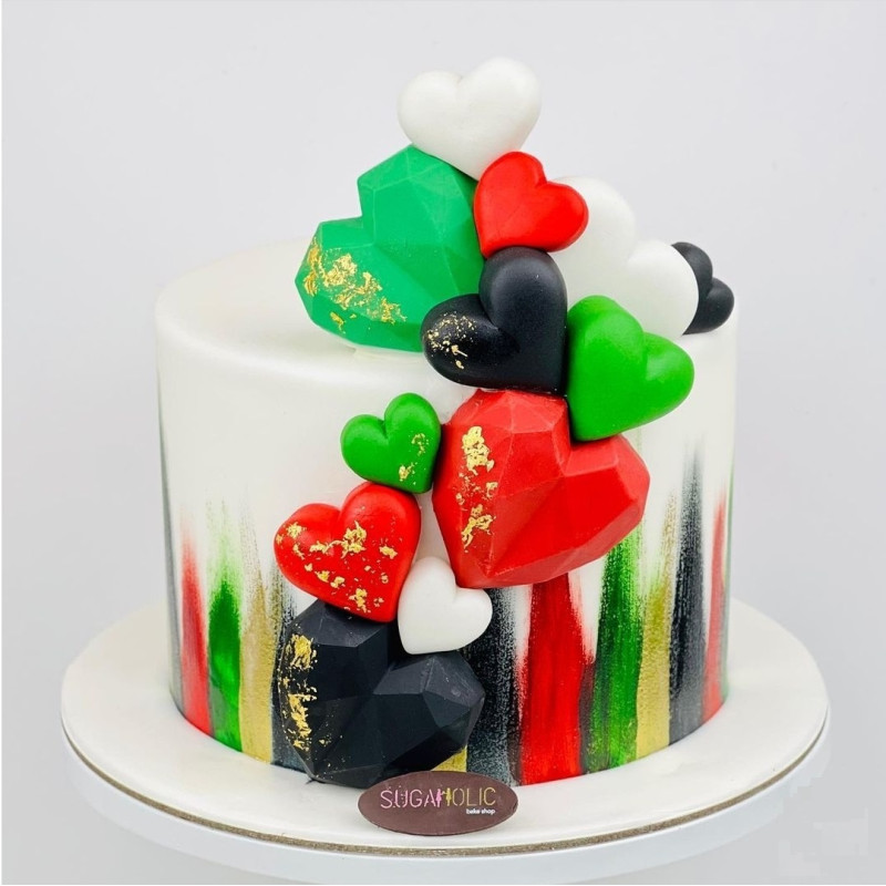 A Custom Cake to show your love for the UAE. With Chocolate hearts on the cake.